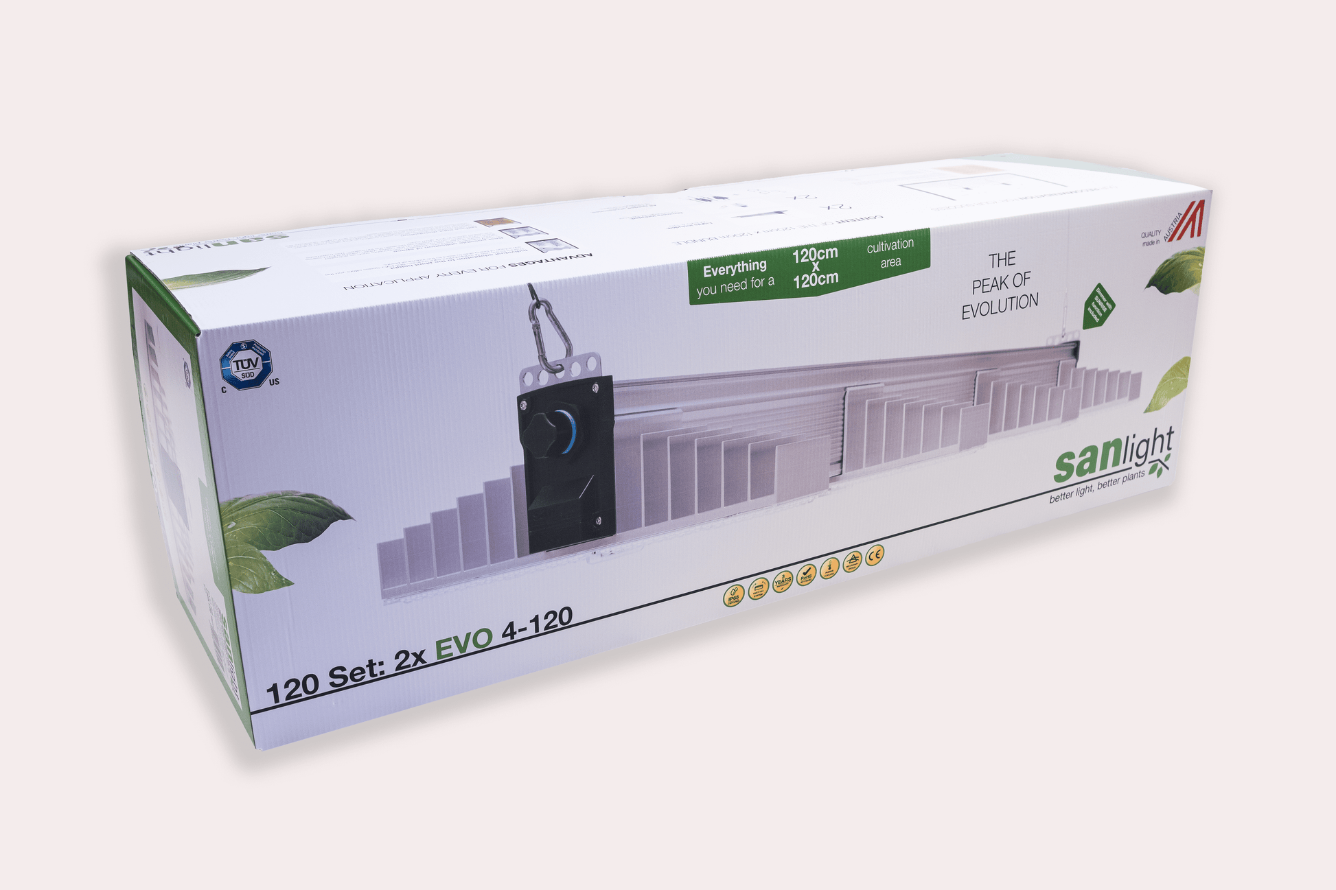 Das nächste Level der Pflanzenbeleuchtung: Das neue SANLight EVO 4-120 530 W 1.5 2er SET – zukunftsweisend und evolutionär! Mit vier Leistungsklassen in fünf unterschiedlichen Längen ist für jeden Gärtner und für jede erdenkliche Fläche, welche es zu beleuchten gilt, etwas dabei. Überdurchschnittlich gute Lichtverteilung wird durch die asymmetrisch abstrahlende Sekundäroptik erreicht.